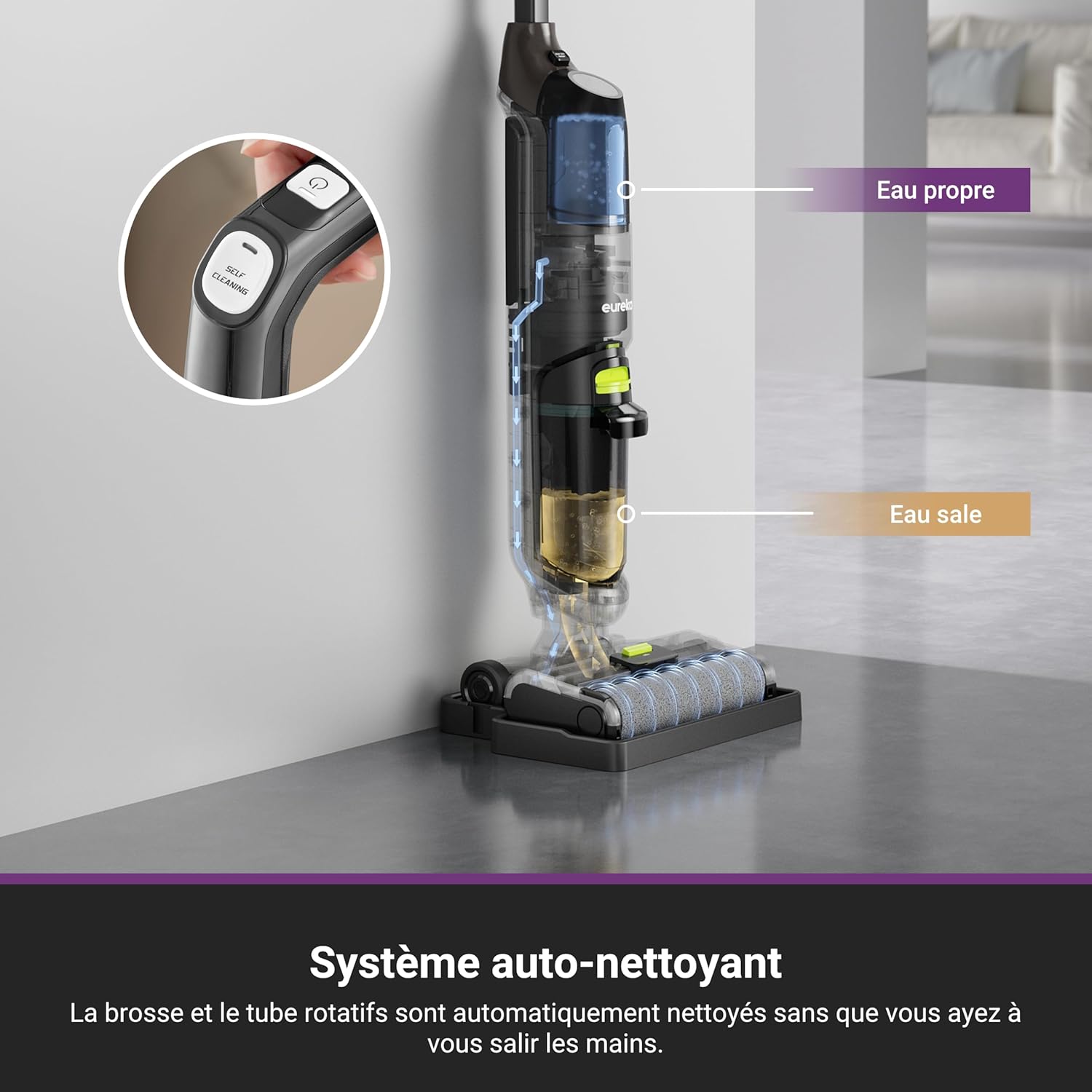 💧 Taux de récupération d'eau de 90 % : Vos sols sont secs et sans traces en quelques minutes.