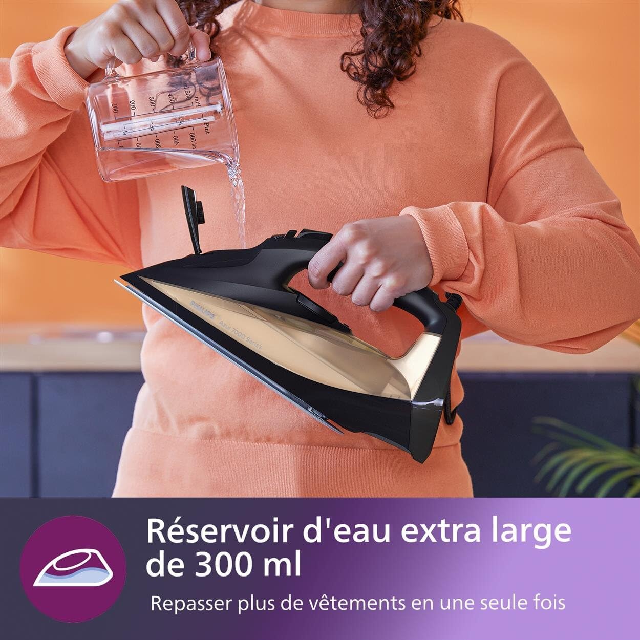 Le fer est conçu avec un réservoir intégré de 300 ml facile à remplir.