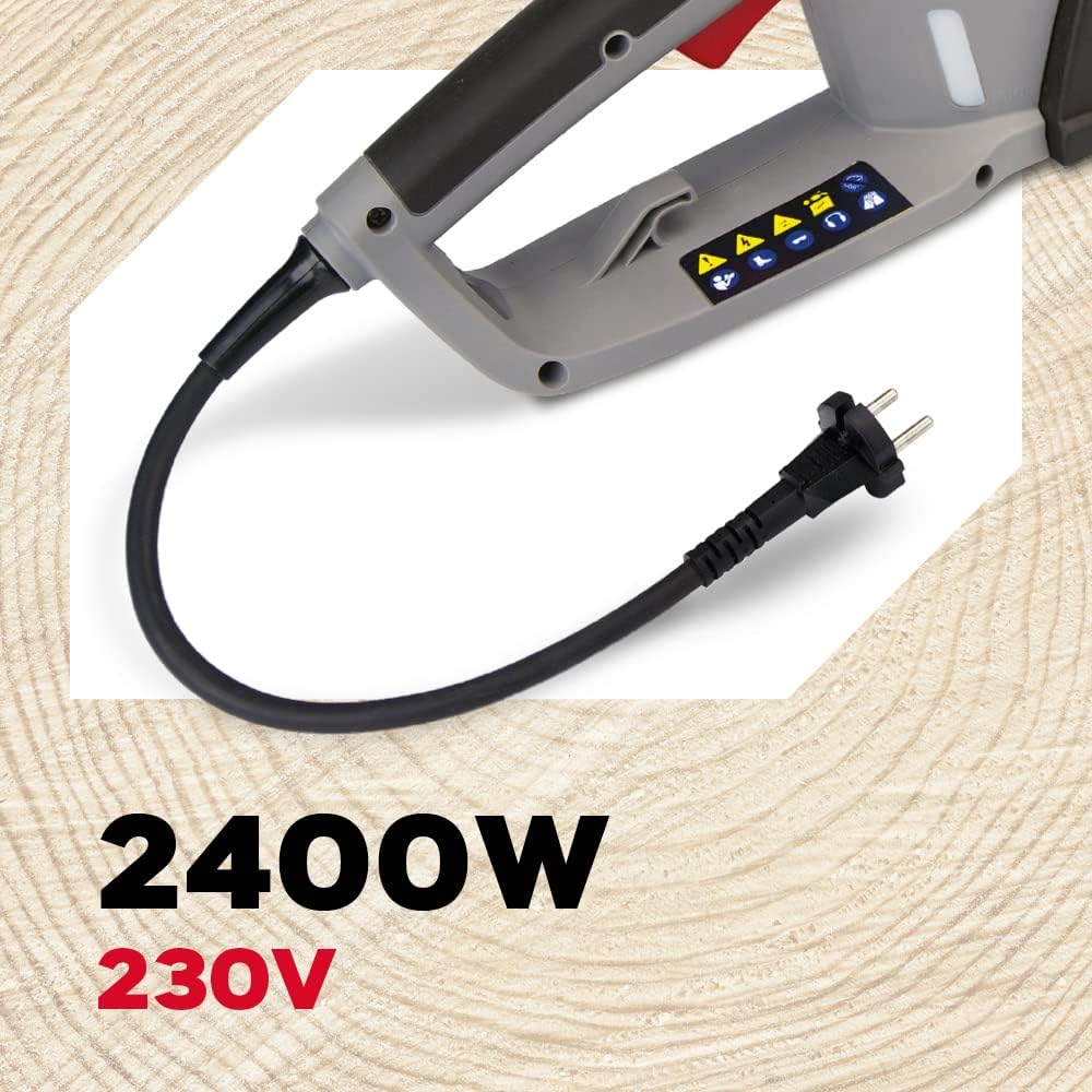 Avec ses 2400W, cette tronçonneuse assure des coupes nettes et précises, même dans les bois les plus durs.